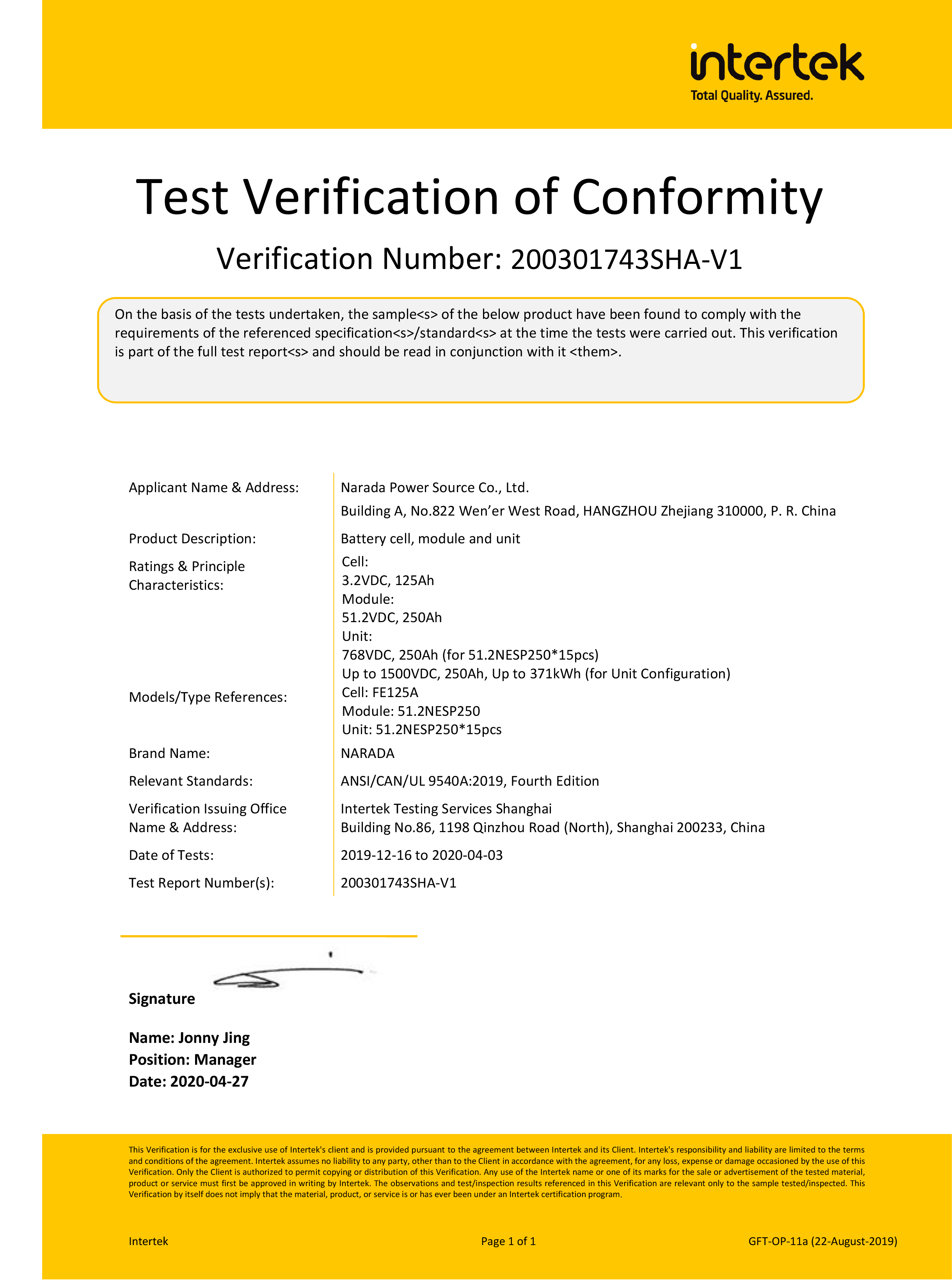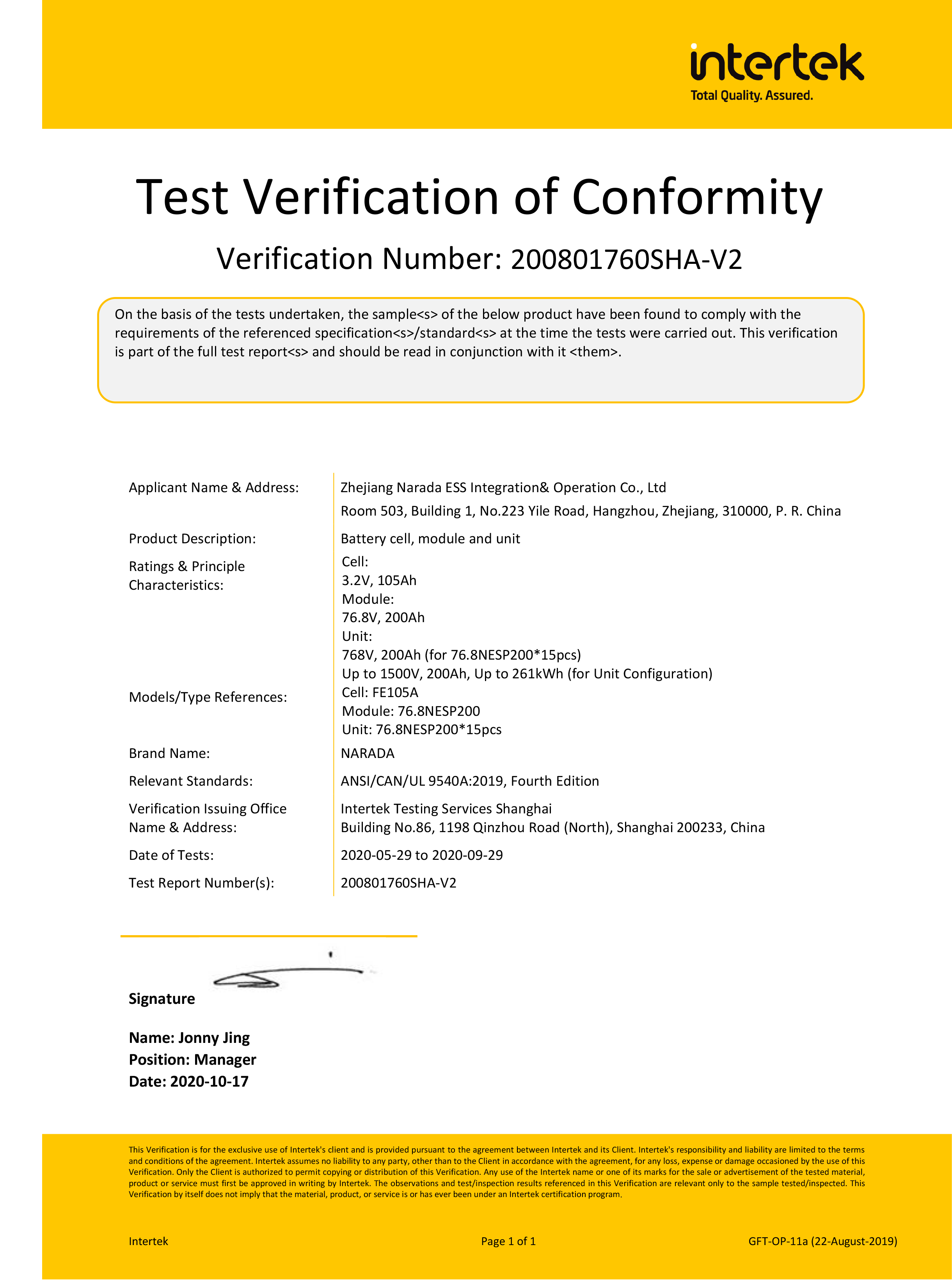 350VIP浦京E米乐电源为全球第一批通过MW级集装箱储能系统UL9540、UL9540A认证的企业。通过UL9540、UL9540A认证,350VIP浦京350VIP浦京储能系统在全球范围内具有极佳的认可度。